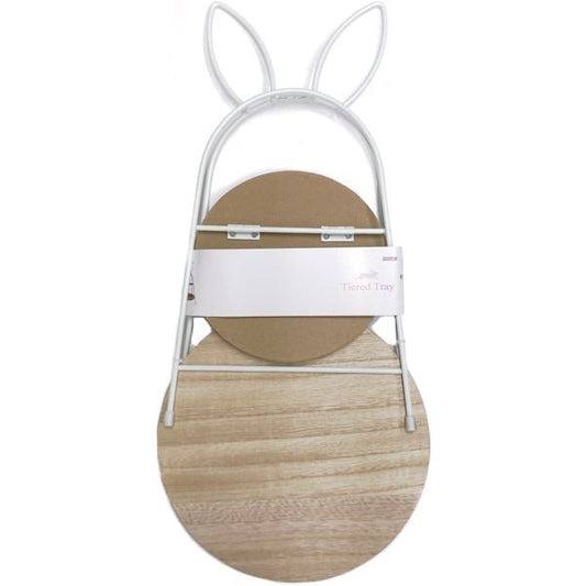 Crescent Bunny Rabbit 2-Tier Display Tray - White/Natural (12.5" x 8") Folds for Easy Storage